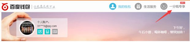 2、登陆百度钱包,点击右上方一分钱专享。