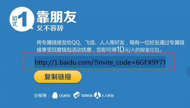 总结:通过百度钱包的1分钱专享活动,获取推广链接,然后把推广链接发到各大论坛,贴吧等等大气流量的社区,当然也可以叫自己的朋友帮忙,但是