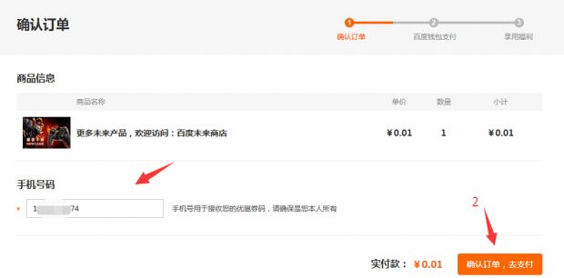 8、输入手机号,点击确认订单,去支付!