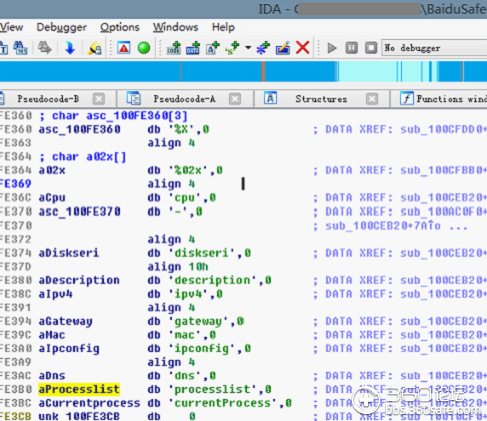 综上,百度用于判定用户软件使用情况的数据有:当前进程、进程列表和屏幕截图。以下为几处代码分析:
