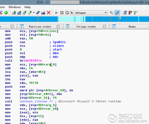 npBaiduSafeInput.dll控件的关键在于sendEnvironmentInfo这个函数,它首先收集信息,收集的信息包括cinfo\bmp两个字段。